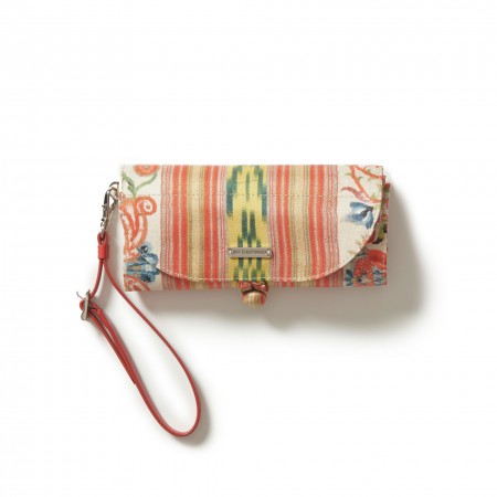 The rebozo, a large fringed shawl, is an authentic symbol of Mexican cultural heritage. The one kept at the Hispanic Society of America, which inspires this delightful folding silk bag with adjustable strap, is woven from silk, gold, silver and linen threads using the ikat technique, and is unparalleled in its exquisiteness and degree of preservation. Dry clean only.