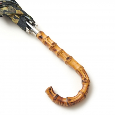 A Florentine garden, rendered with tiny brushtrokes, stirs to life under a Renaissance dawn. Plants coil gently around two sorrowing figures; flowers and grass caress their feet. We are drawn deep into the paradise of Fra Angelico's Annunciation, one of the most fertile gardens in the whole Prado collection in terms both of the number of species represented and of the lush foliage. Their highly precise execution suggests that the artist examined the actual plants closely in minute detail. This is reflected in this beautiful umbrella, made of the highest quality materials: steel shaft, cotton fabric and curved bamboo handle.