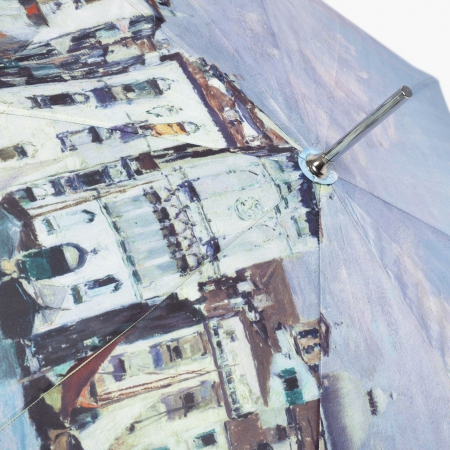 This colorful automatic umbrella that reproduces a detail from the painting The Riva degli Schiavoni in Venice (Martín Rico y Ortega, 1873) will take you to this italian landscape. Made with the highest quality materials: steel shaft, cotton fabric and curved bamboo handle; It will be the perfect way to show off one of the most beautiful works in the Museo Nacional del Prado collection.