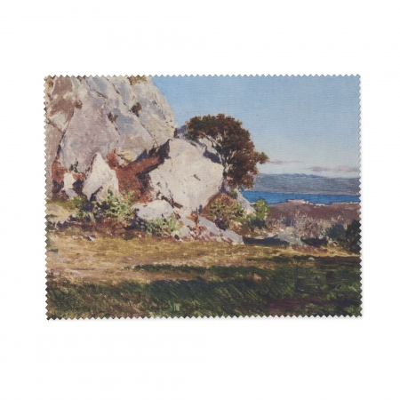 Two very different techniques with unique emotivities. In this practical double-sided cleaning cloth, useful for cleaning glasses, cameras, mobile phones, screens and jewellery, you can see the skill of two 19th-century masters. On one side, it reproduces the work Lagoon Landscape (circa 1872) by Carlos de Haes, and on the other, Neapolitan Landscape (1874) by Mariano Fortuny.