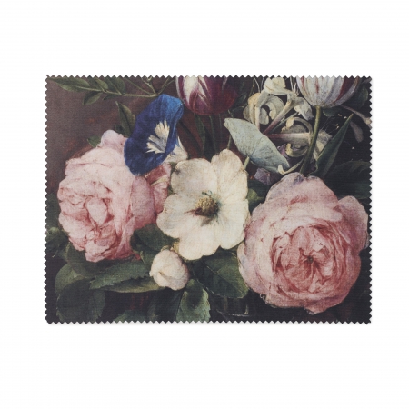 This practical double-sided cleaning cloth, useful for cleaning glasses, cameras, mobile phones, screens and jewellery, reproduces two still lifes painted by Jan Brueghel the Elder, one of the creators of cabinet painting, which began to establish itself as such in the 17th century. On both sides of this cloth can be seen the delicacy of the flowers depicted in his Vase of Flowers, dated 1600-1625 and the first quarter of the 17th century, respectively.