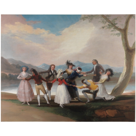 In the center of a circle of characters characterized by their traditional clothing, one of the young people, blindfolded, tries to reach his companions with a spoon, according to the rules of the popular game.This case, which reproduces a detail from one of the cartoons for tapestries in the Museo Nacional del Prado in which Goya recreated scenes from daily life in Madrid at the end of the 18th century, Blind Man's Buff (1788), will protect your glasses so you can take them with you anywhere.