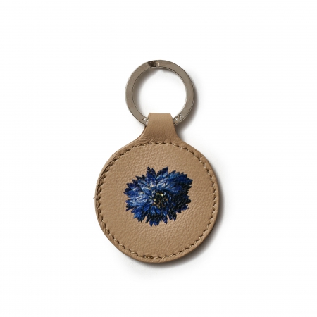 "Blue flower" leather keyring