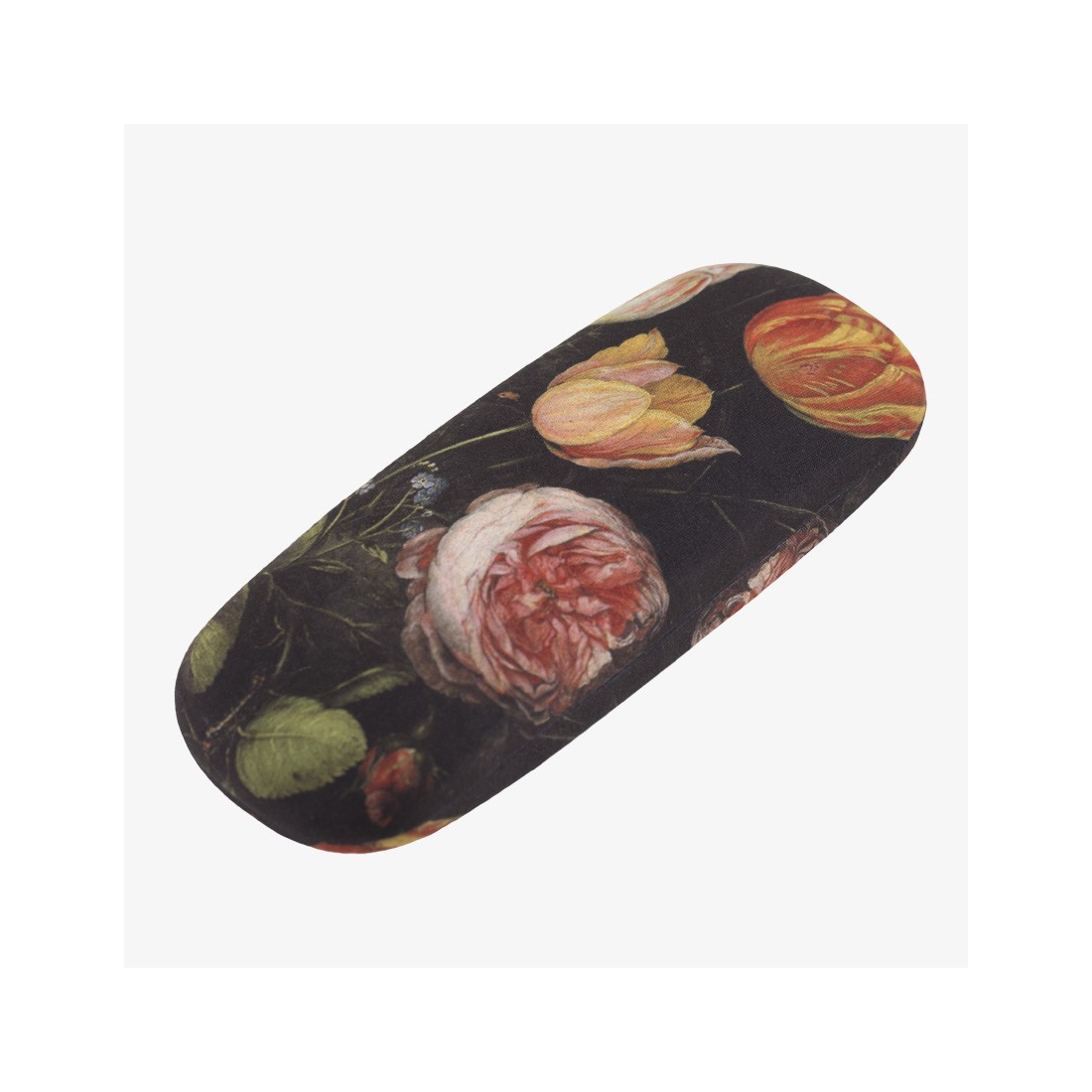 The brightness achieved through color makes the flowers stand out delicately against the dark background in this elegant glasses case, which reproduces in detail some of the flowers that are portrayed in the work of the Museo Nacional del Prado, Vase of Flowers (17th century), by Jan Brueghel the Elder.