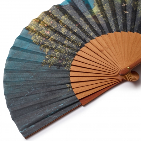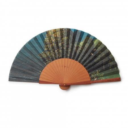 This beautiful detail of the work Caront crossing the Styx (1520-1524) by Joachim Patinir, allows us to appreciate the artist's meticulousness in the creation of his landscapes, characterized by his use of symbolism and the fantastic. It is reproduced like this in this beautiful fan, a traditional, effective and sustainable remedy to mitigate the summer heat.