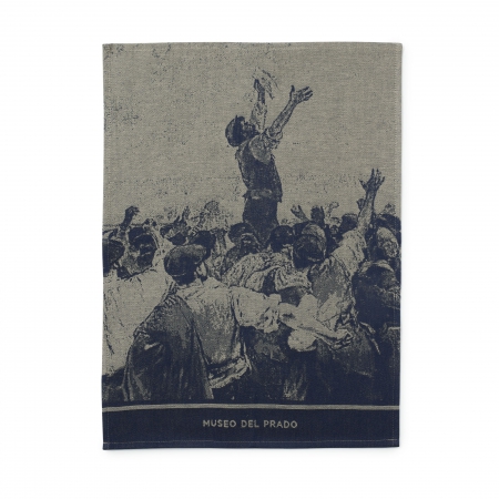 The limited possibilities of action that the working classes had throughout the 19th century expanded at the end of the century. Strikes became an instrument of defence and political struggle and, during the 1890s, they became more frequent in the more industrialised and mining areas, such as the outbreak of workers' strikes in Vizcaya and the celebration of May Day, where Vicente Cutanda y Toraya found the inspiration for a series of works of which this monumental canvas, Workers on Strike in Vizcaya (1892), forms part. The main figure of the loom-woven composition is reproduced in detail, making this tea towel a very special accessory.