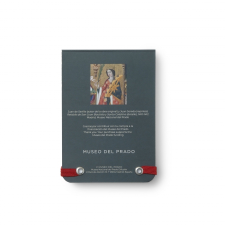 This notepad reproduces motifs taken from the Retable of Saints John the Baptist and Catherine (1410-1412) by Juan de Sevilla (author of the original work) and Juan Soreda (author of the repainting).