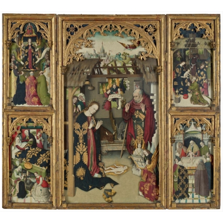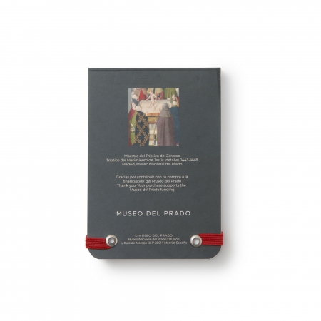 This notepad reproduces motifs taken from the Triptych of the Birth of Jesus (1443-1448) by the Master of the Zarzoso Triptych.