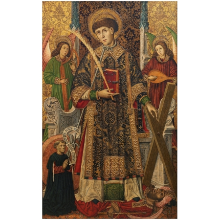This light bag reproduces motifs taken from the Saint Vincent, Deacon and Martyr, with a Donor (1462-1466) by Tomás Giner.