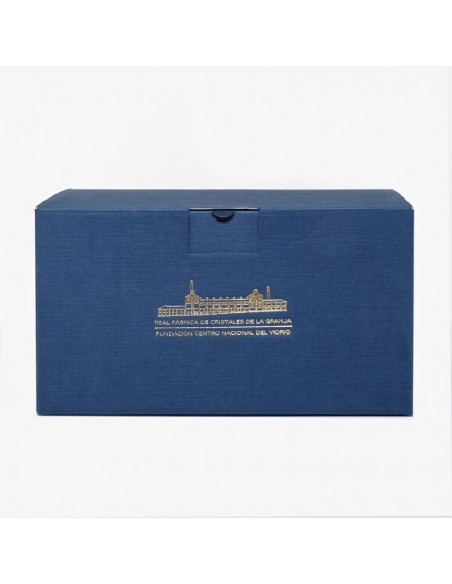 A monkey sits on an elephant in one of the most mysterious details of Bosch's Garden of Earthly Delights Triptych (1490-1500), reproduced using the sandblasting technique on the seal of this fine glass bottle, handcrafted exclusively for the Museo del Prado by the masters of the Real Fábrica de Cristales de La Granja.