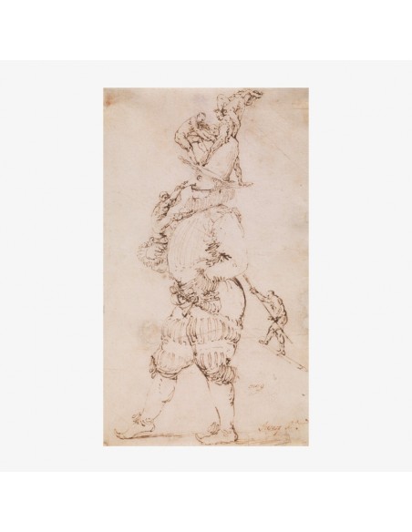 Decorate your walls with an exclusive IXXI wall decoration, made up of several pieces that are easily assembled by means of a simple anchoring system. This model reproduces one of the drawings of Jusepe Ribera from the Museo del Prado collection, A Masked Man with Small Figures Climbing up His Body (1627-30). This masked man, in profile, embodies one of the protagonists of the Commedia dell'Arte, a theatrical and carnivalesque Italian show.
