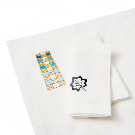 Embroidered by Artesanía Rocío Lozano (Lagartera -Toledo). Artesanía Rocío Lozano, a family business with more than a hundred years of tradition, reinterprets in these exceptional and delicate pieces details of architecture and plant forms found in works from the Prado Museum's collection of Gothic paintings. Motifs made with top quality materials using the technique of hand embroidery, using needle, thimble and thread, as has been done since the 16th century in the birthplace of this type of embroidery, Lagartera (Toledo).