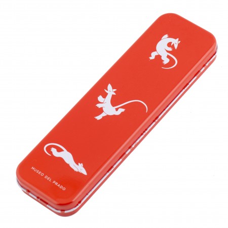 Writing and drawing materials are neatly organised in this cheerful pencil case featuring a dancing lizard inspired by one of the many animals painted and imagined by Bosch in the astonishing The Garden of Earthly Delights Triptych (1490-1500).