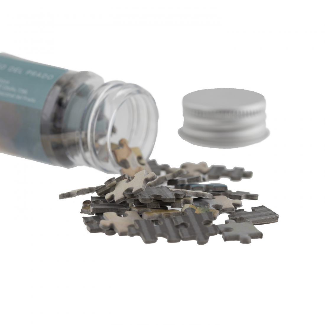 Find all the entertainment of a concentrated puzzle in this micro-puzzle that reproduces one of Goya's most famous series of tapestry cartoons dedicated to the Four Seasons. In The Grape Harvest or Autumn (1786), a young man offers a lady a bunch of grapes. Behind them, a peasant woman carries a basket full of grapes on her head.