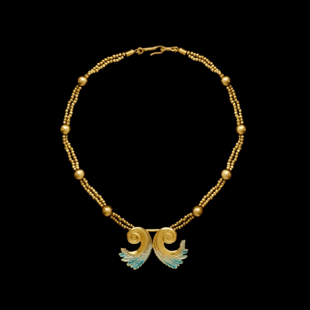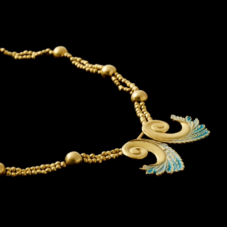 This necklace inspired by the Gadrooned cup with an eagle's head celebrates the strength, nobility, and splendor of the historic piece carved in heliotrope and serpentine. This neck ornament is a modern relic that merges imperial heritage with a contemporary vision of elegance and character.