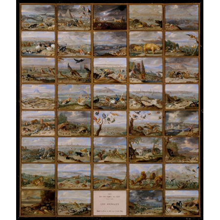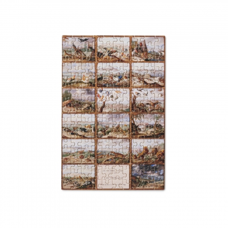 On the occasion of the exhibition On the Reverse, held at the Museo Nacional del Prado from 7 November 2023 to 3 March 2024, the magnificent work reproduced in this entertaining puzzle is presented to the public: The Four Parts of the World (1660-1666) by Jan van Kessel the Elder. In the context of this exhibition, this work shows how small-format rigid supports were as suitable as paper for recording works in progress or making notes during an apprenticeship session or an outing to draw from life. The copper panels from the two series that van Kessel the Elder painted are a good example of this type of manifestation; in this particular case, the panels were reused and several notes were preserved on the backs.