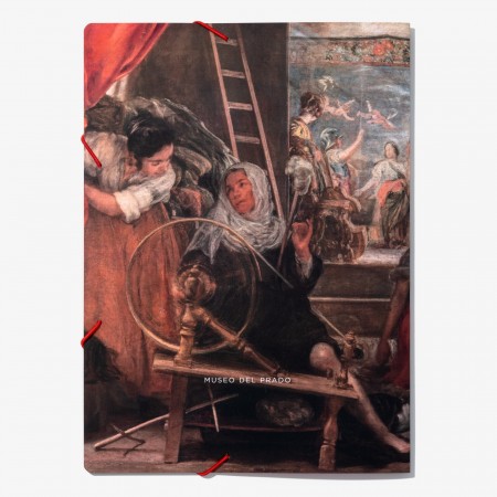 This practical one-compartment folder that can hold A4-size documents. reproduces one of the essential works in the Museo del Prado's extraordinary collections, The Spinners, or the Fable of Arachne (1655-1660), mythological composition that constitutes one of the most complex works of Diego Velázquez, and the culmination of his tendency to create sophisticated and ambiguous compositions.