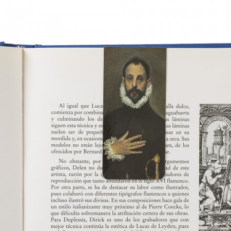El Greco's The Nobleman with his Hand on his Chest (ca. 1580) is one of the most famous portraits in the Museo del Prado. With this practical magnetic bookmark, which reproduces a detail of the emblematic painting, you can mark the place where you interrupted the reading of your favourite books.