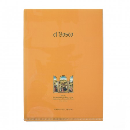 The thistle leaves symbol of the Passion, the representation of Abner kneeling before King David in the vessel carried by the Magician, the Phoenix that evokes the Resurrection of Christ, are just examples of the symbolism that is an inherent part of the works of Hieronymus Bosch and that can be seen in this small detail of The Adoration of the Magi (Ca. 1494), which is reproduced in this practical document sleeve, which can hold several sheets of A5 paper.