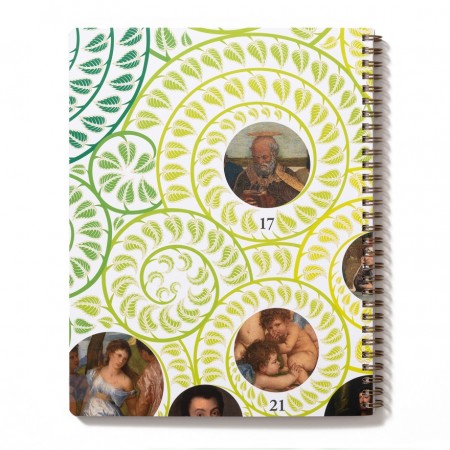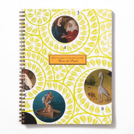 This large children's notebook reproduces on its covers two details of the chronological tree of the Museo del Prado's masterpieces, featuring some of the most famous paintings in the history of Western art. This notebook reproduces a detail identifying works by artists of the stature of Bosch, Titian and Patinir.