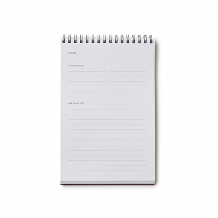 The beautiful details and the amazing texture achieved in this still life "Two Fruit Bowls on a Table" (1642) by Tomás Hiepes, is reproduced on the cover of this practical notebook with which you will always have the recipes for your favourite dishes at hand.