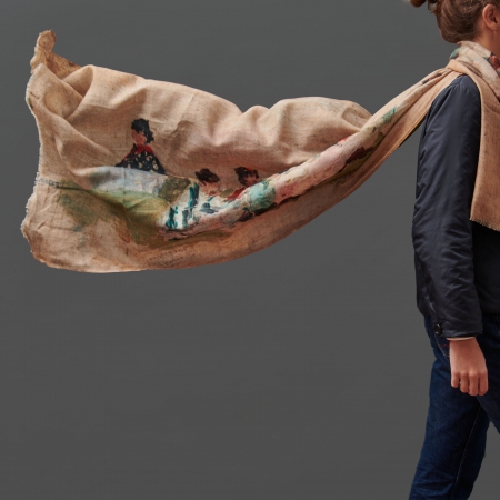 Stole of merino wool and silk handmade by artisans from the Kashmir Region and designed exclusively for the Prado Museum. Reproduces a detail of the work Granada (1871, Martín Rico y Ortega) Madrid, Museo Nacional del Prado.