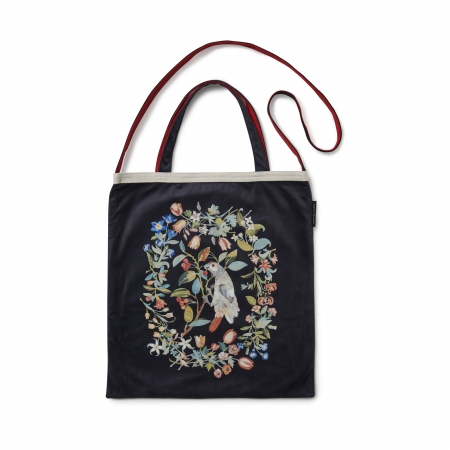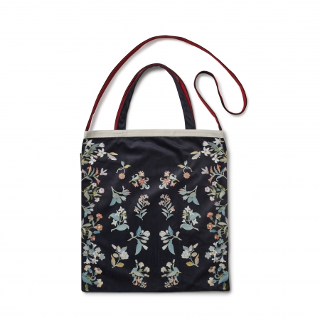The design of this bag is inspired by the motifs that make up the Writing desk of Nuncio Máximo (1749-1763), which is among the Museo del Prado's select collection of console tables with hardstone panels. Carved in the most exceptional hard stones from Florentine manufactories, it manifests the changing tastes of the modern period, which favoured naturalistic decoration with floral elements such as those reproduced in this original and beautiful velvet bag.