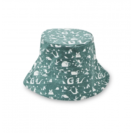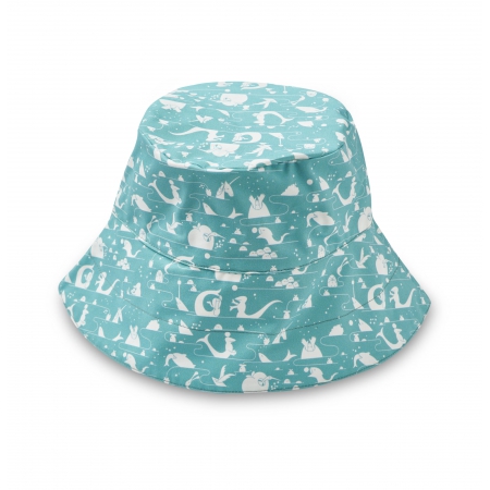 Fisher hat, made with cotton fabric. It has a soft touch ideal for sheltering from both heat and cold. The design is based on floral, plant and animal details from Bosch's artwork The Garden of Earthly Delights (1490 - 1500).