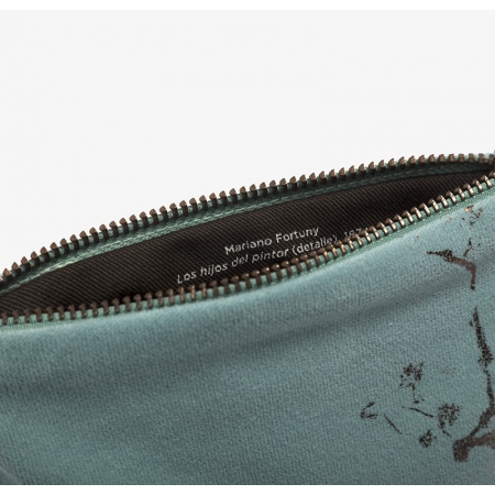 This soft aquamarine handbag reproduces in gold one of the most charming details of Mariano Fortuny's painting The Painter's Children in the Japanese Room (1874): the two butterflies perched on the pine and plum branches behind the little girl.