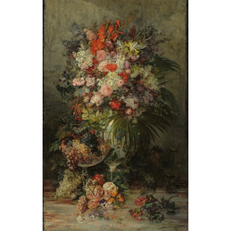María Luisa de la Riva was one of the painters who enjoyed the greatest public recognition in 19th-century Spain. Specialising in flower painting, she fought hard to achieve fame, managing to separate herself as an artist from her husband, the painter Domingo Muñoz Cuesta. This makes her one of the protagonists of the first major episode in the professionalisation of women painters on the peninsula. In Flowers and Fruits (1887) she took great pains to evoke the textures of the great variety of flowers and fruits in this complex composition, which is depicted on the cover of this practical notebook.