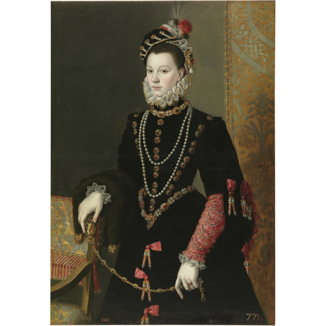 Mittens, an elegant and feminine accessory, were an essential part of court etiquette. They appear in numerous portraits, crafted in lace, tulle, or fine linen, and in varying lengths. The rich color palette of the luxurious textiles seen in the portraits of Maria Amalia of Saxony, Elisabeth of Valois, Elisabeth Farnese, and Louise Élisabeth of Orléans inspires this knitwear collection, which brings together art, social impact, and commitment.