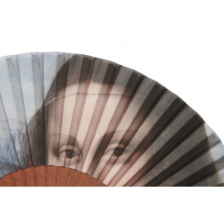 La mirada de Lisa Gherardini del Giocondo, retratada por un miembro del taller de Leonardo da Vinci en la copia del Museo del Prado de Mona Lisa (1507-1516), nos persigue en este abanico, remedio tradicional, efectivo y sostenible para mitigar el calor veraniego.