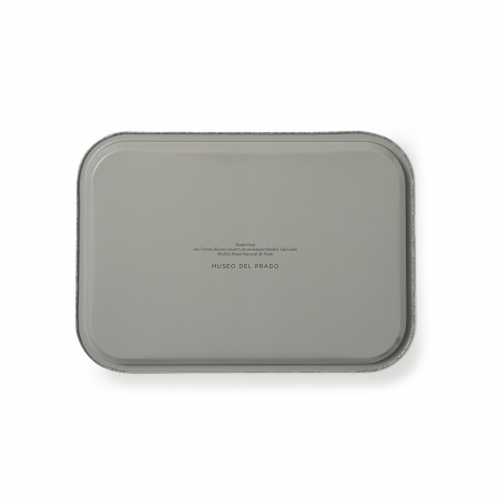 En esta bandeja se reproducen los motivos extraídos de la obra San Vicente, diácono y mártir, con un donante (1462-1466) de Tomás Giner.
