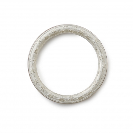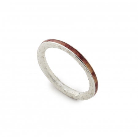 Inspirados en el diseño del manto del grabado Imagen de la Virgen de los Reyes de la Catedral de Sevilla (finales del siglo XVII) de Hendrik Causé, que el Museo Nacional del Prado conserva en su colección. Estas piezas se han fabricado de forma artesanal siguiendo la tradicional técnica de fundición a la cera perdida en plata de ley 925. El diseño en plata remata estos anillos con la incrustación de madera natural de palo de rosa y caoba, como una lectura contemporánea de los elementos ornamentales del grabado.