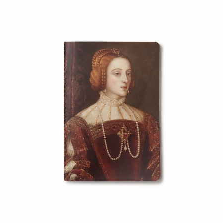En la portada de este bonito cuaderno se reproduce el bello retrato de La emperatriz Isabel de Portugal (1548), de Tiziano, que conforma uno de los episodios más emotivos del arte del Renacimiento. Cuando falleció la emperatriz, su esposo el emperador Carlos V carecía de un retrato suyo, y encargó al pintor esta obra que siempre llevaría consigo el resto de su vida.