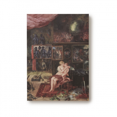 This compact notebook reproduces a detail of the work The Sense of Touch (1618), resulting from the collaboration of Jan Brueghel the Elder and Peter Paul Rubens and part of the series of paintings that both artists dedicated to the senses. Its cover shows the central part of the composition with two warm figures that contrast with the cold scenery that surrounds them, full of weapons, helmets, helmets, armor and a myriad of metal objects.