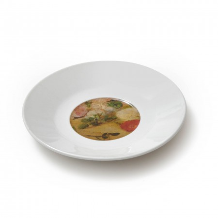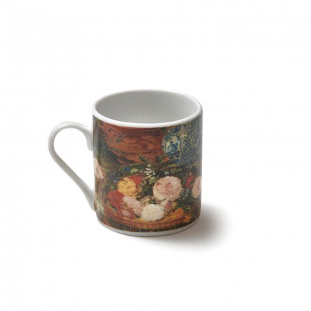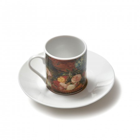 Este bonito juego de café reproduce un detalle de la obra El Olfato (1617-1618), resultante de la colaboración de Jan Brueghel el Viejo y Pedro Pablo Rubens. Decorada con el primer plano de la obra donde, con gran maestría, se representan distintos tipos de flores así como otros elementos simbólicos, los artistas van dando forma a una perfecta alegoría del sentido que da nombre al lienzo.