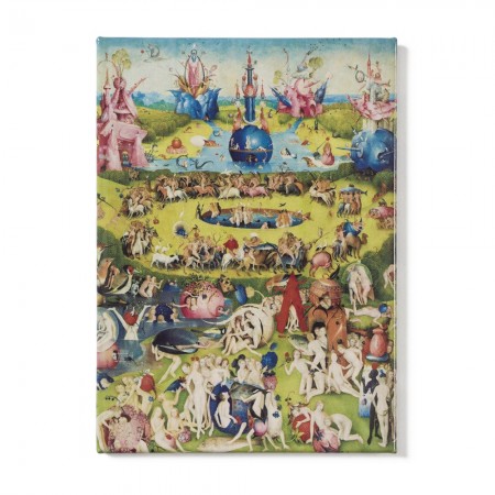 En este imán se reproduce buena parte del panel central del célebre Tríptico del jardín de las delicias (h. 1490-1500), creación única del Bosco. En él podrás buscar algunos de los detalles más enigmáticos de esta pintura imprescindible en las colecciones del Museo del Prado.