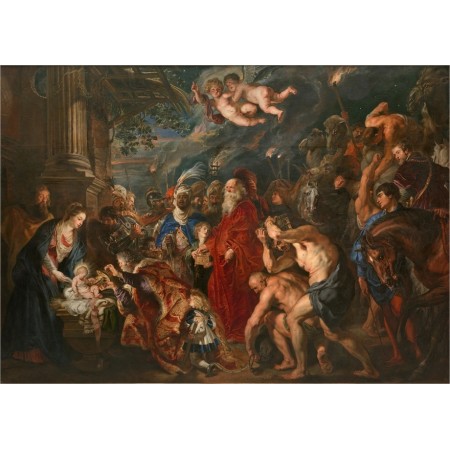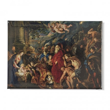 Este imán reproduce con todo detalle una de las obras más destacadas dentro de la colección de Rubens que atesora el Museo del Prado, no solamente por ser la de mayores dimensiones sino también por la importancia histórica y técnica de la misma: La Adoración de los Magos (Rubens, 1609). La obra fue realizada en dos momentos; el primero en torno a 1608-1609 y veinte años después fue ampliada por el propio artista.