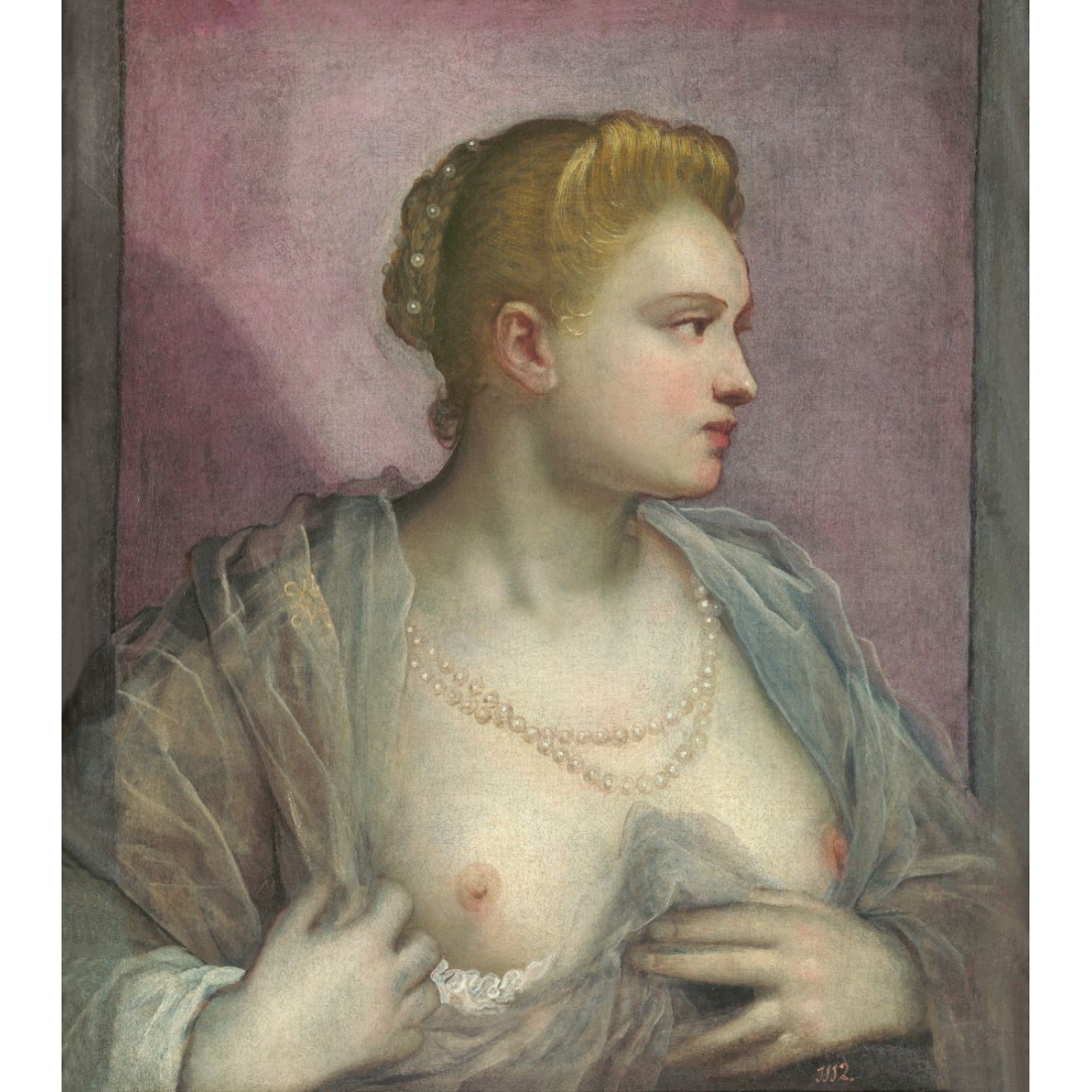 Dama descubriendo el seno