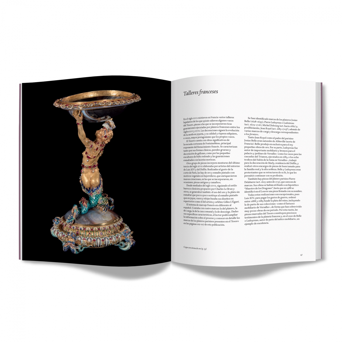 Ilustrada con fotografías y detalles de la máxima fidelidad a las obras originales, la guía está divida en diez capítulos, correspondientes a su organización en las salas del Museo. Incluye asimismo un glosario de términos, un capítulo dedicado a las marcas de los plateros y de fedatarios públicos (fermiers) realizadas en París durante el último cuarto del siglo XVII y un índice onomástico de autores y obras.