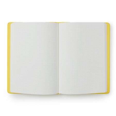 Tapa dura. A5 (15,3 x 21,3 cm). 90 hojas (180 páginas). Pauta de puntos.