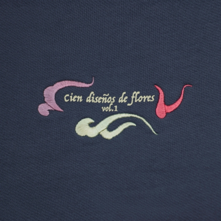 Inspirada en la estampa ilustrada con el motivo tradicional de la tortuga en la parte trasera. Título del libro y detalles vegetales bordados en la parte frontal.