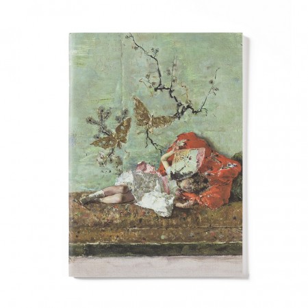 Mariano Fortuny captó la intimidad de sus hijos de un modo sutil en Los hijos del pintor en el salón japonés (1874). La portada de este cuaderno muestra a la pequeña María Luisa tumbada sobre el alargado diván en una cautivadora composición inspirada en el arte japonés que sigue fascinándonos hoy en día.