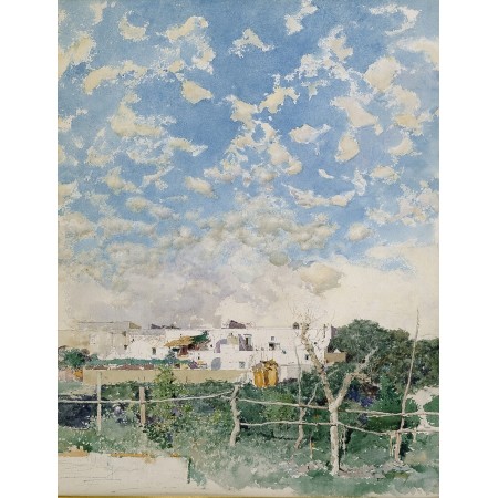 Este lápiz de madera reproduce un detalle de la obra Paisaje de Portici (1874), una de las acuarelas de la época de Portici que reflejan la parte más sensible y delicada de la obra artística de Fortuny.