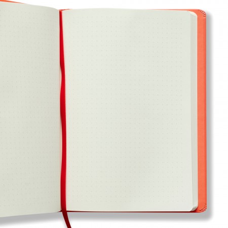 Tapa dura. A5 (15,3 x 21,3 cm). 90 hojas (180 páginas). Pauta de puntos.