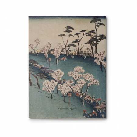La rica policromía conseguida gracias a la técnica de múltiple impresión de tacos de madera a color conocida popularmente como nishiki-e, da vida a la obra Fiesta de contemplación de los cerezos en flor en Asukayama (Asukayama hanami) (1830-1843), de Utagawa Hiroshige y Sanoya Kihei (editor). Una pieza especial que se conserva en la colección de estampas japonesas del Museo Nacional del Prado, y que se reproduce en la cubierta de este práctico cuaderno.