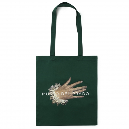 Esta cómoda bolsa de tela reproduce un detalle del conocido Caballero de la mano en el pecho (h. 1580), del Greco, icono del noble español y una de las pinturas más reconocibles del Museo del Prado. Su tamaño y resistencia la convierten en un práctico accesorio para el día a día.