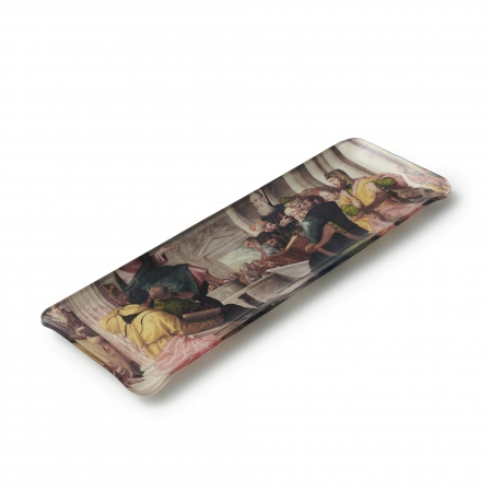 Esta bandeja reproduce un detalle de la obra de Paolo Veronese La disputa con los doctores en el templo (h. 1560), de la colección del Museo Nacional del Prado.