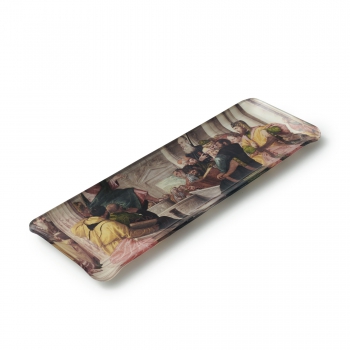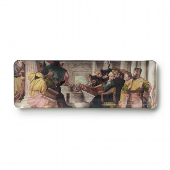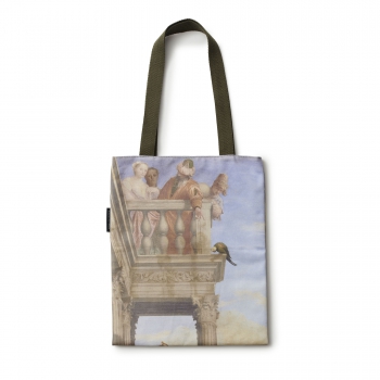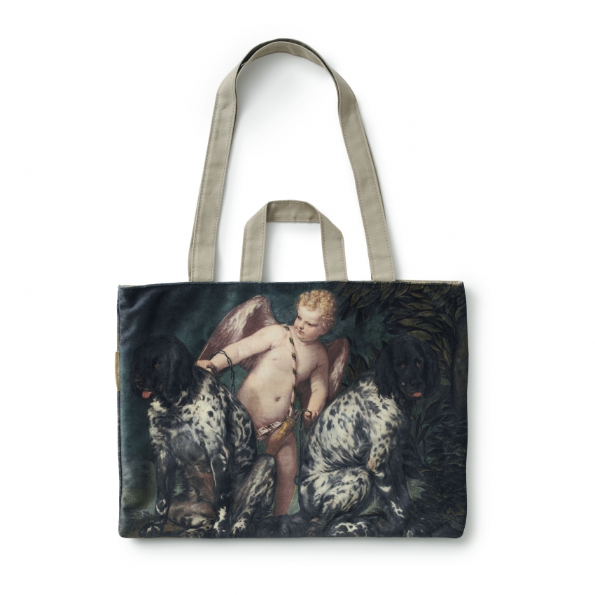 Esta bolsa, producida con motivo de la exposición Paolo Veronese 1528-1588, reproduce un detalle de la obra Cupido con dos perros (1575-1580), perteneciente a la colección de la Alte Pinakothek Muenchen en Múnich.